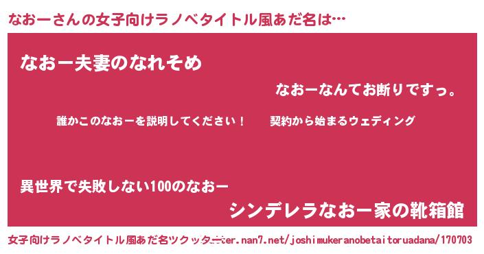 | 男性向けラノベタイトル風あだ名 | 『ナオーアートオンライン』 |