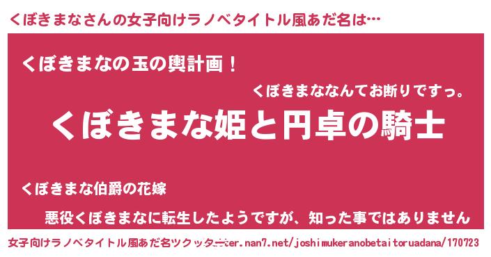 | 男性向けラノベタイトル風あだ名 | 『クボキマナアートオンライン』 |