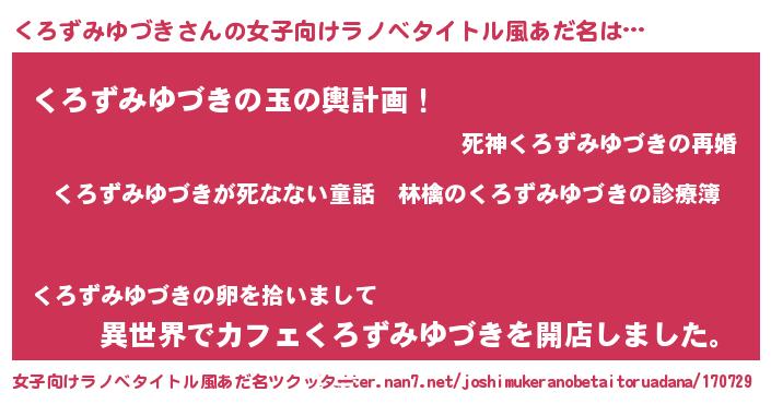 | 意味不明あだ名 | 『住所不定無職くろずみゆづき(47歳)』 |