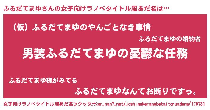 | ヒーロー風カッコイイあだ名 | 『スーパーフルダテマユ』『天弓騎士フル』 |