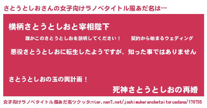 | 胡散臭い通販商品みたいなあだ名 | 『あなたにだけ特別に提供する世界で10本だけ現存している希少なブランデー…その名も「さとうとしお」』 |