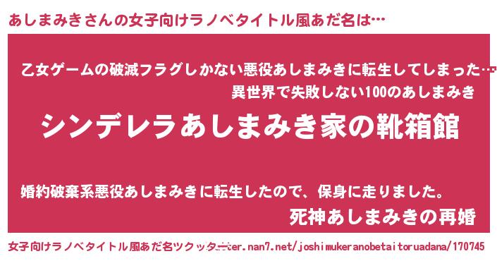 | 胡散臭い通販商品みたいなあだ名 | 『ハリウッド女優が絶賛した100年もののヴィンテージワイン…その名も「あしまみき」』 |