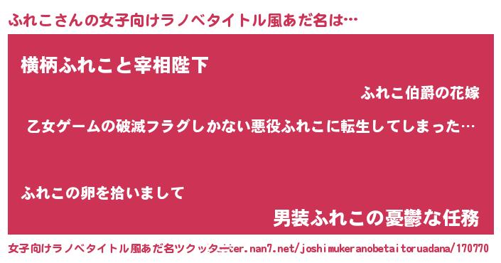 | 意味不明あだ名 | 『住所不定無職ふれこ(41歳)』 |