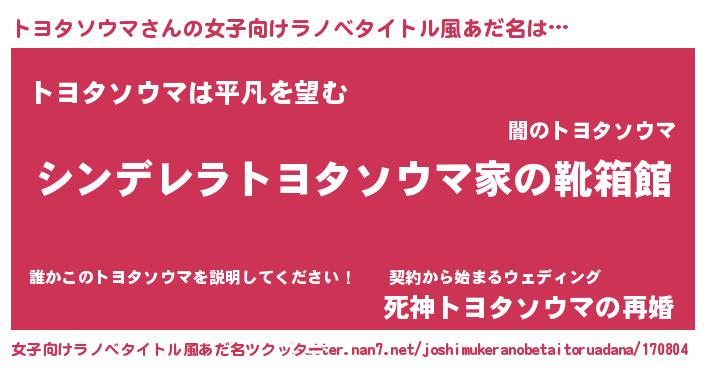 | 男性向けラノベタイトル風あだ名 | 『緋弾のトヨタソウマ』 |