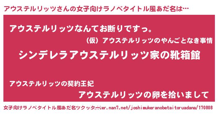| 意味不明あだ名 | 『自称アウステルリッツ』 |