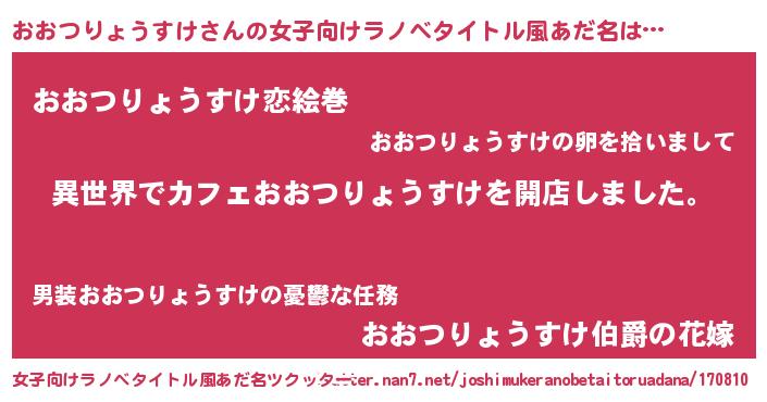 | 男性向けラノベタイトル風あだ名 | 『誰もが恐れるあのおおつりょうすけが、ぼくの専属メイドになるようです。』 |