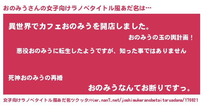 | 胡散臭い通販商品みたいなあだ名 | 『あなたにだけ特別に提供する世界で10本だけ現存している希少なブランデー…その名も「おのみう」』 |