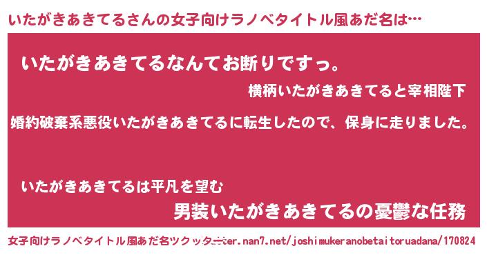 | ファンタジー風あだ名 | 『ユリイタヴァット』『ゼイタトゥ』 |