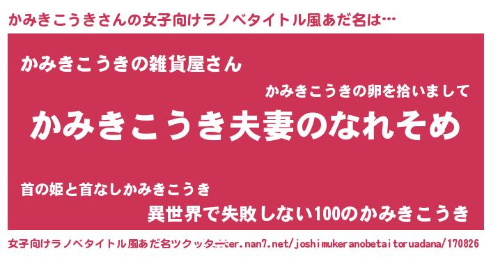 | 男性向けラノベタイトル風あだ名 | 『おまえをオタクにしてやるから、俺をかみきこうきにしてくれ! 』 |