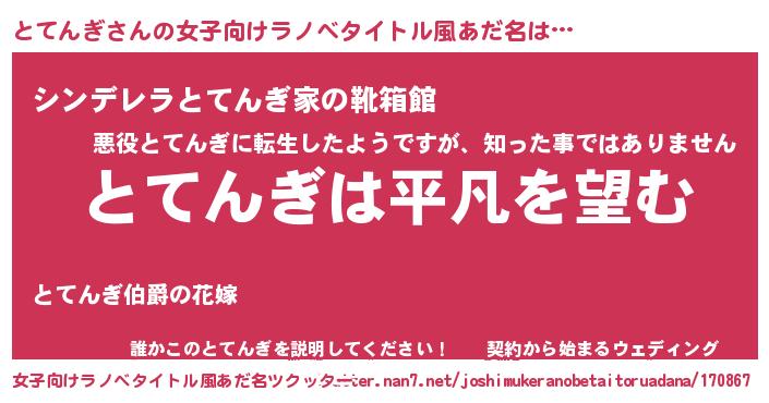 | 男性向けラノベタイトル風あだ名 | 『ダンジョンにとてんぎを求めるのは間違っているだろうか』 |