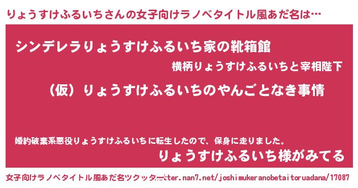 | 胡散臭い通販商品みたいなあだ名 | 『必ず成功するブレスレット…その名も「りょうすけふるいち」』 |
