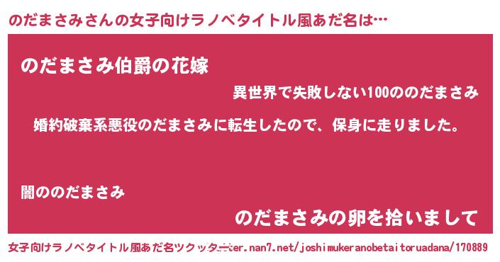 | 男性向けラノベタイトル風あだ名 | 『ノダマサミスレイヤー』 |