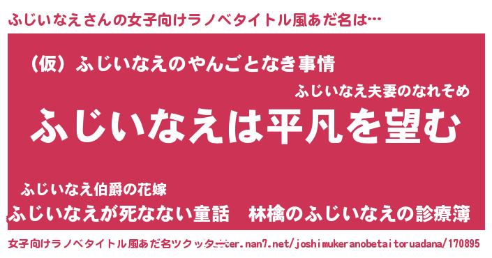 | 男性向けラノベタイトル風あだ名 | 『ダンジョンにふじいなえを求めるのは間違っているだろうか』 |
