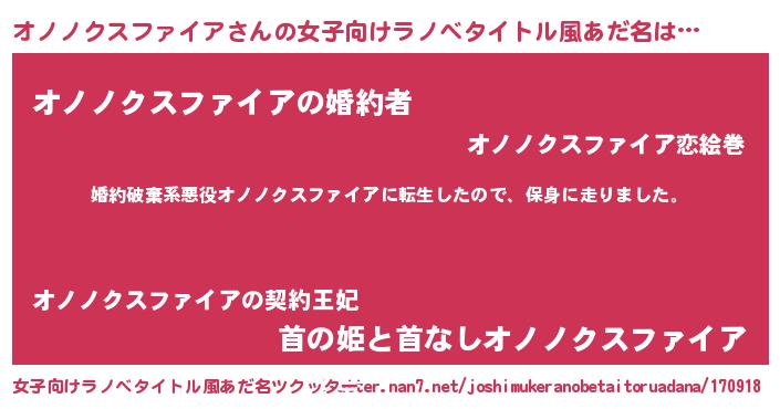 | 男性向けラノベタイトル風あだ名 | 『オノノクスファイアスレイヤー』 |