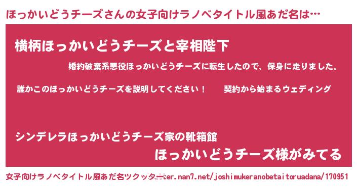 | ヒーロー風カッコイイあだ名 | 『スーパーホッカイドウチーズ』 |
