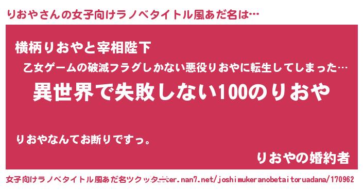 | 男性向けラノベタイトル風あだ名 | 『りおやという概念が存在しない退屈な世界 』 |