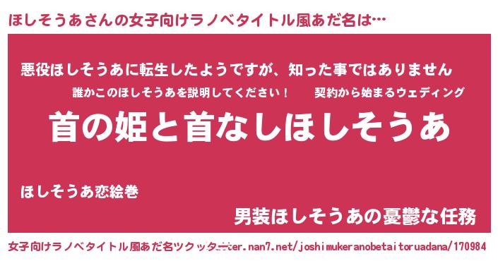 | 胡散臭い通販商品みたいなあだ名 | 『ハリウッド女優が絶賛した100年もののヴィンテージワイン…その名も「ほしそうあ」』 |