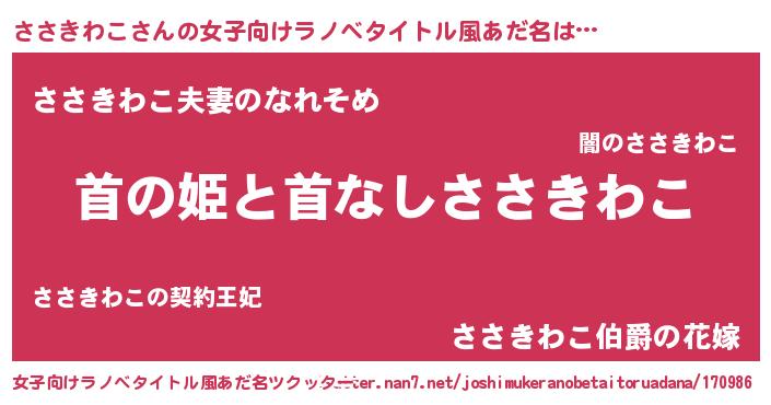 | ヒーロー風カッコイイあだ名 | 『友情の使者ささきわこ』『天弓騎士ササ』 |