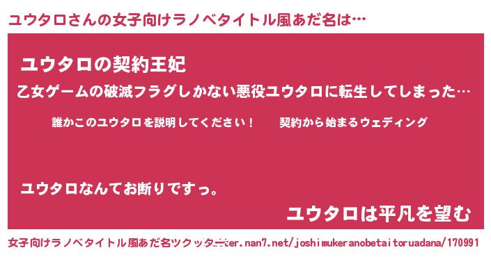 | 男性向けラノベタイトル風あだ名 | 『ユウタロアートオンライン』 |
