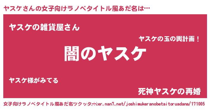 | ファンタジー風あだ名 | 『ゼヤストゥ』『エターナルヤスケー』 |