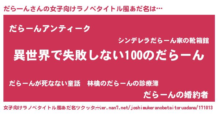 | 胡散臭い通販商品みたいなあだ名 | 『絶対に幸福をもたらす水素水…その名も「だらーん」』 |