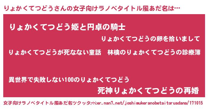 | ヘコむあだ名 | 『りょもー』『りょぷりん』 |