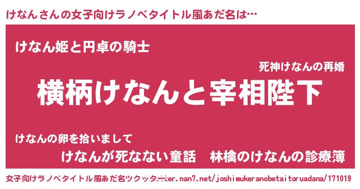 | 意味不明あだ名 | 『ペロリンけなん』『自称けなん』 |