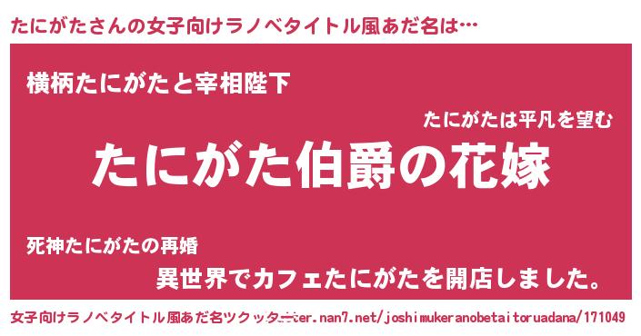 | 男性向けラノベタイトル風あだ名 | 『やはりたにがたの青春ラブコメはまちがっている 』 |