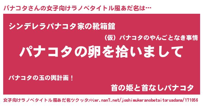 | 意味不明あだ名 | 『とにかく怪しいパナコタ』 |