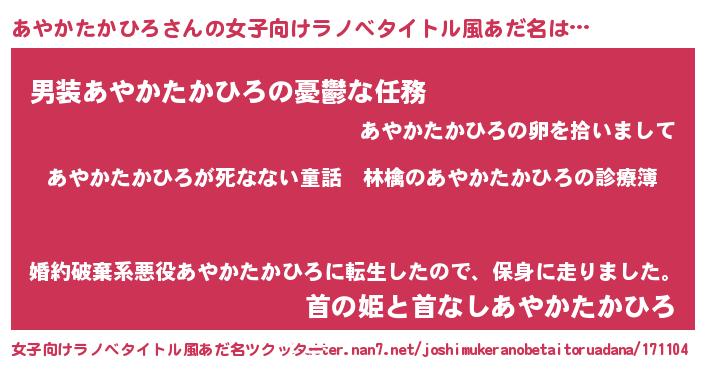 | 欧米人風あだ名 | 『ダレノガレあやかたかひろ』 |