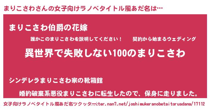 | 男性向けラノベタイトル風あだ名 | 『まりこさわという概念が存在しない退屈な世界 』 |