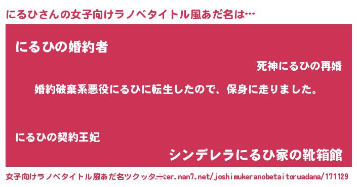 | 男性向けラノベタイトル風あだ名 | 『ニルヒスレイヤー』 |