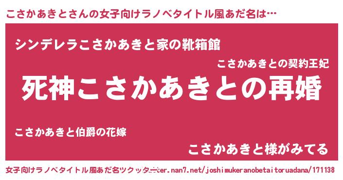 | 男性向けラノベタイトル風あだ名 | 『ノーゲーム・ノーコサカアキト』 |