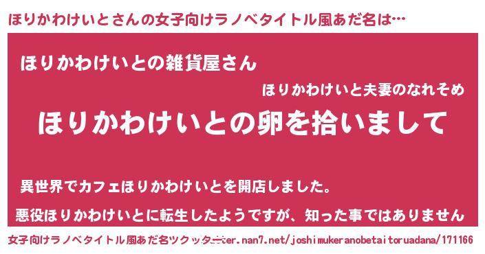 | 意味不明あだ名 | 『とにかく怪しいほりかわけいと』 |