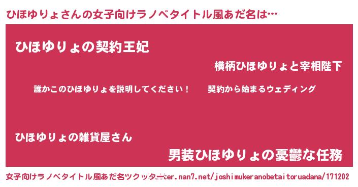 | 胡散臭い通販商品みたいなあだ名 | 『億万長者になれる水晶球…その名も「ひほゆりょ」』 |