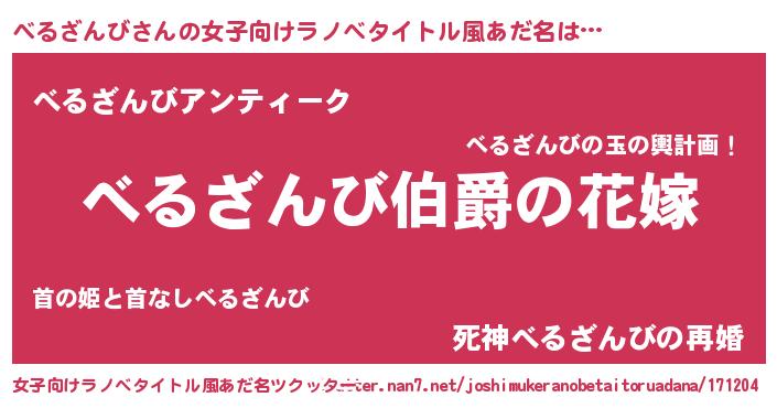 | 意味不明あだ名 | 『べるざんびフォーエバー』 |