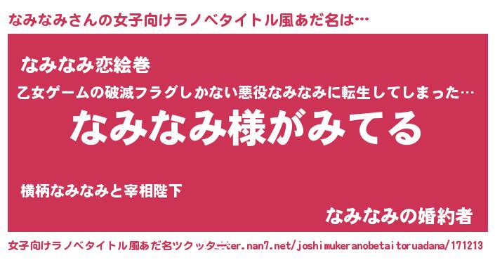 | 男性向けラノベタイトル風あだ名 | 『なみなみの嫁は女の子じゃないと思った?』 |
