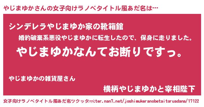 | 意味不明あだ名 | 『自称やじまゆか』『永久保存やじまゆか』 |