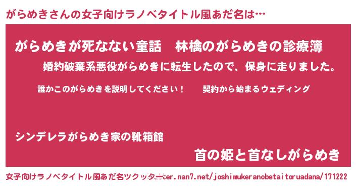 | 胡散臭い通販商品みたいなあだ名 | 『億万長者になれる水晶球…その名も「がらめき」』 |