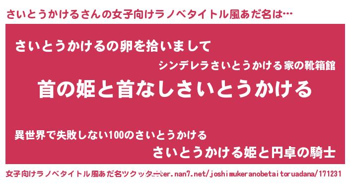 | 男性向けラノベタイトル風あだ名 | 『はたらくさいとうかけるさま!』 |