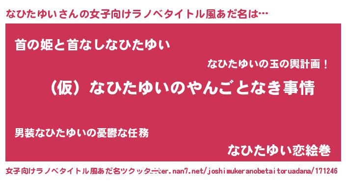 | 男性向けラノベタイトル風あだ名 | 『なひたゆいの憂鬱』 |
