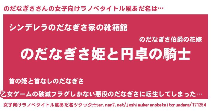 | 男性向けラノベタイトル風あだ名 | 『のだなぎさの憂鬱』『緋弾のノダナギサ』 |
