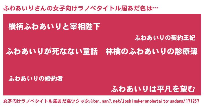 | 欧米人風あだ名 | 『ダレノガレふわあいり』 |