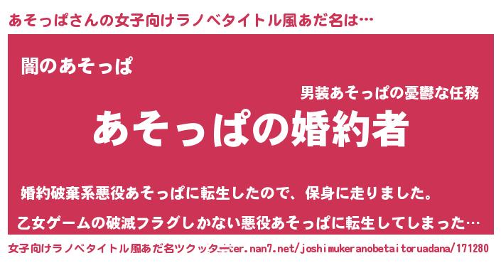 | 男性向けラノベタイトル風あだ名 | 『うちの娘の為ならば、俺はもしかしたらあそっぱも倒せるかもしれない。』 |