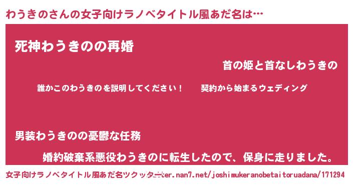 | 男性向けラノベタイトル風あだ名 | 『ワウキノアートオンライン』 |