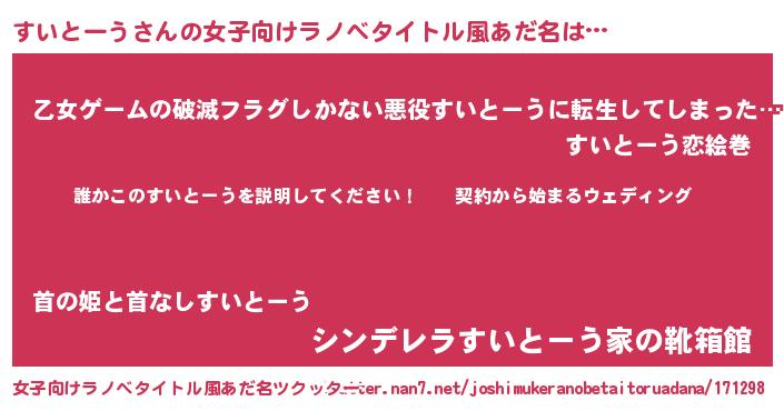 | 男性向けラノベタイトル風あだ名 | 『スイトーウアートオンライン』 |