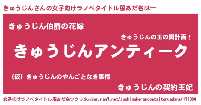 | 意味不明あだ名 | 『自称きゅうじん』『永久保存きゅうじん』 |