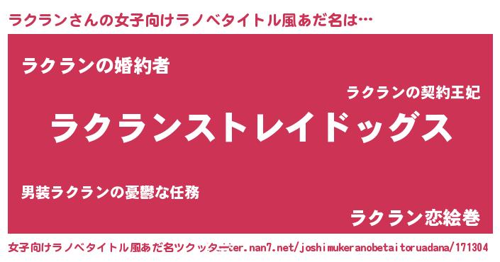 | 胡散臭い通販商品みたいなあだ名 | 『芸能人もオススメする高麗人参…その名も「ラクラン」』 |