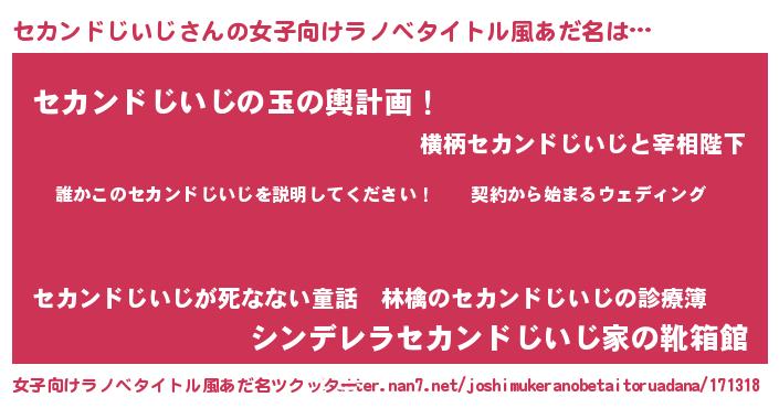 | 胡散臭い通販商品みたいなあだ名 | 『億万長者になれるブレスレット…その名も「セカンドじいじ」』 |