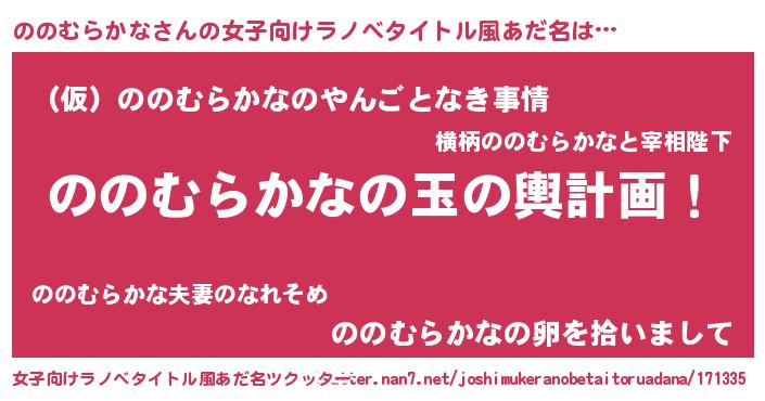 | ヒーロー風カッコイイあだ名 | 『スーパーノノムラカナ』『暗黒騎士ノノ』 |